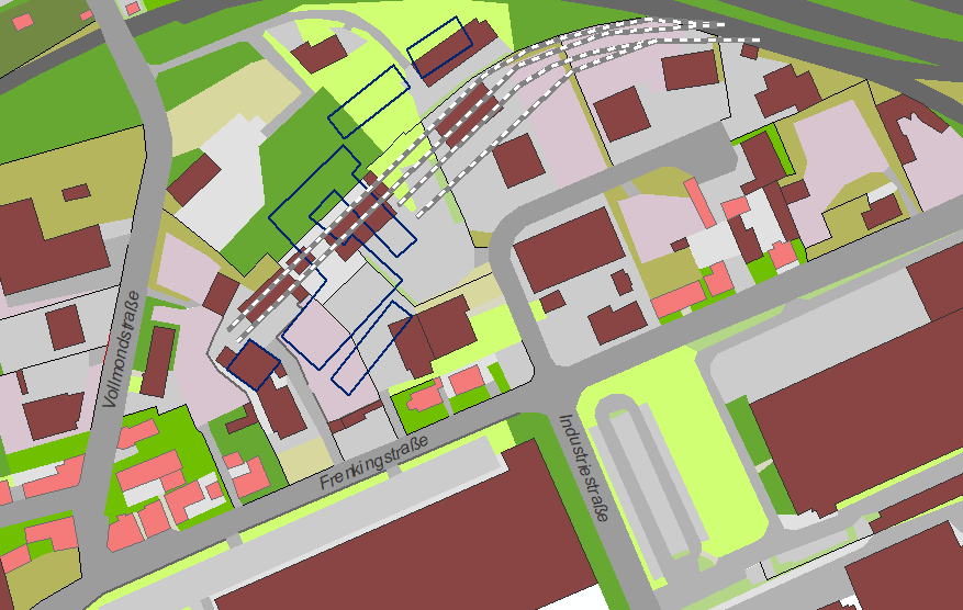 Die unten abgebildeten Karten zeigen den Standort der Zeche Vollmond. Die Umrisse der Zeche sind mit den dunkelblauen Konturen nachgezogen.